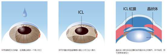 ICL晶体植入术又叫有晶体眼后房型人工晶体植入术,将一种“矫正近视的超薄微型镜片”放置于眼睛后房间隙,即虹膜与晶状体之间,是目前较为安全的近视矫正手术之一。