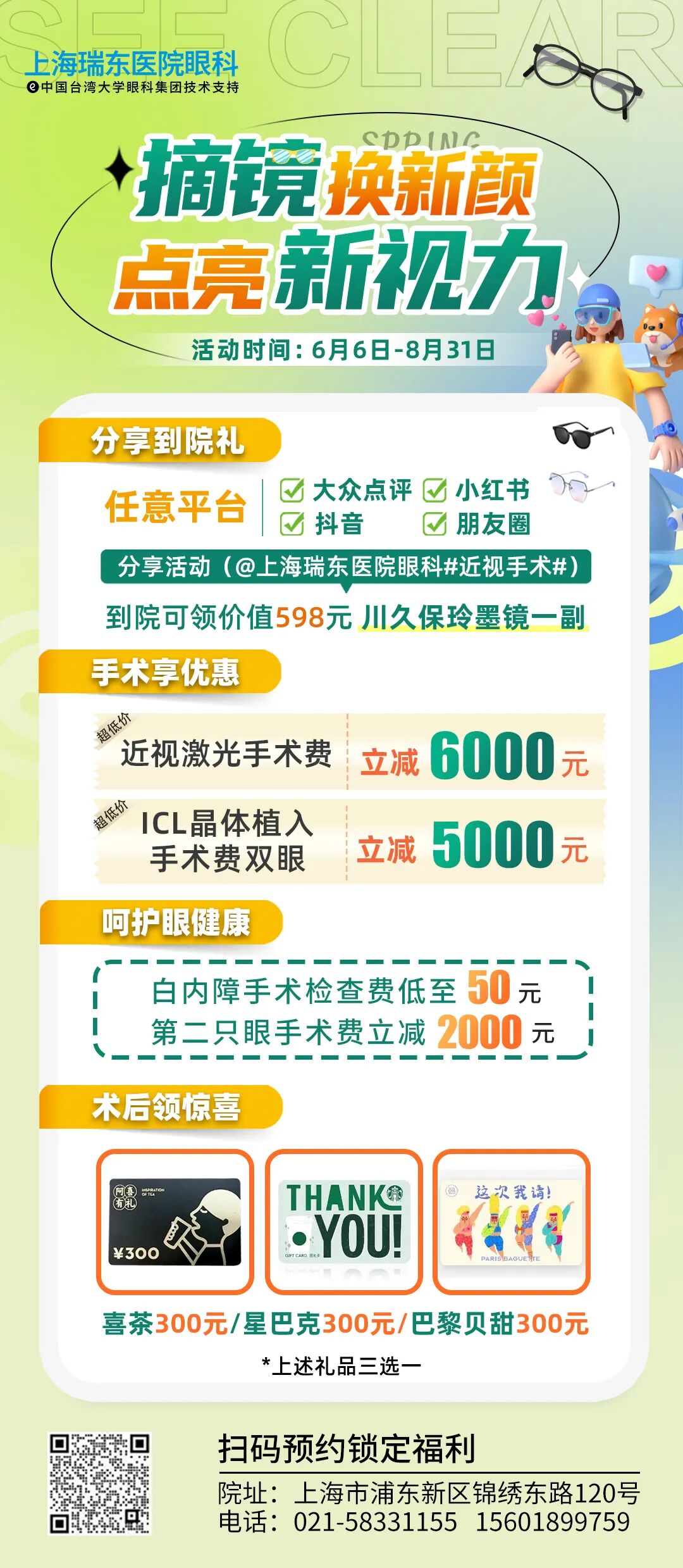 上海浦东新区锦绣东路120号——瑞东医院二楼眼科