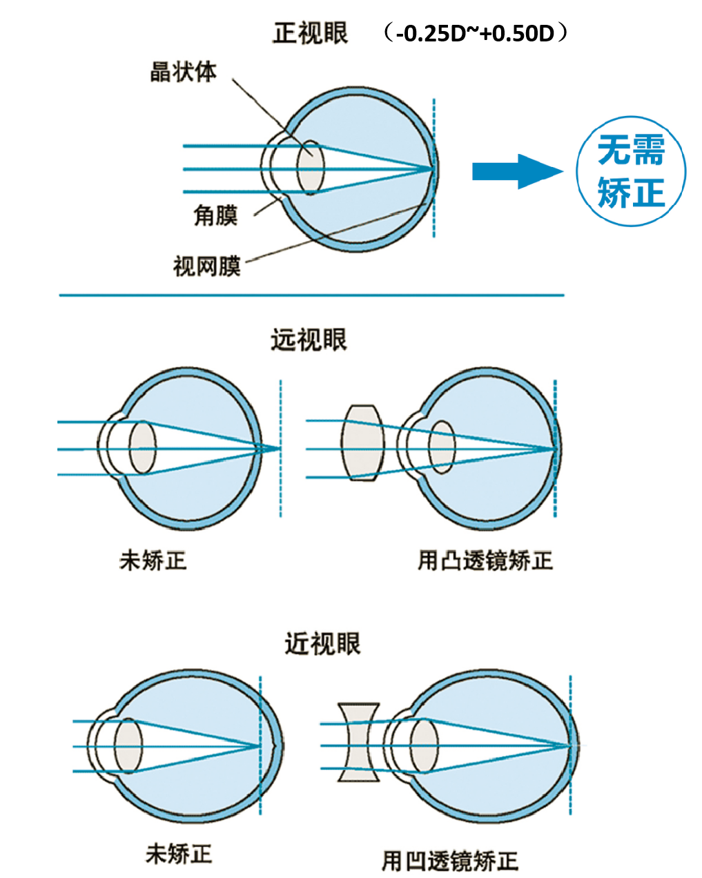例如:+1.50D即为远视150度,-0.50D即为近视50度
