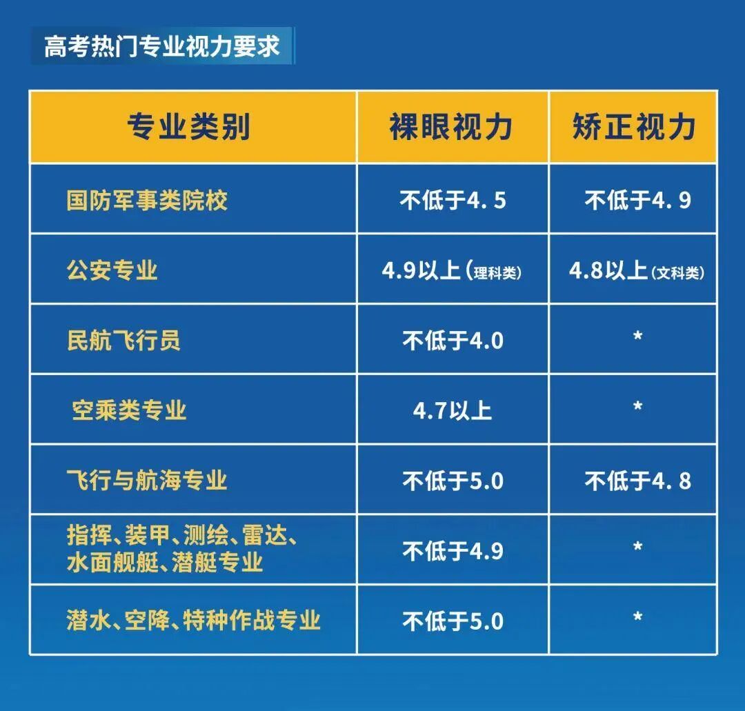 然而就目前而言,许多专业不仅对分数有要求,对考生的视力也有严格的限制。