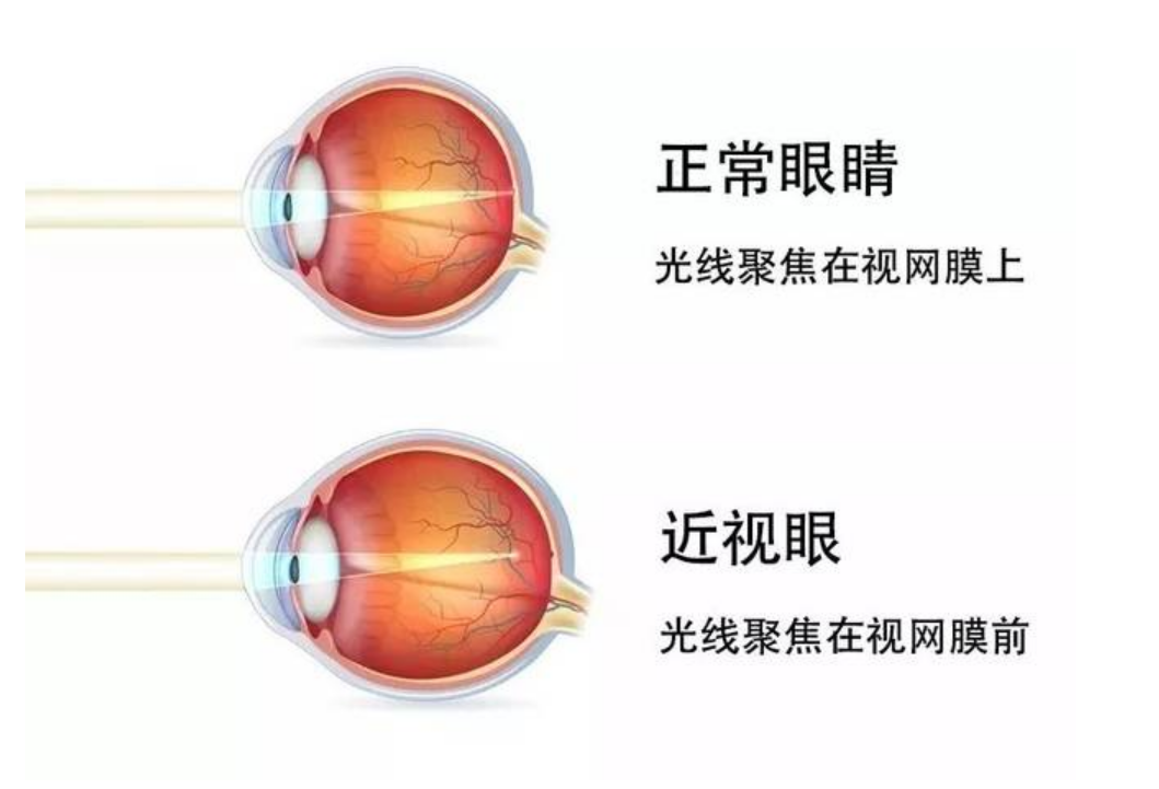 其实近视的度数高不高,主要是与眼睛里的三个地方有关:角膜、晶状体和眼轴,大多数人的近视是眼轴过长引起的。眼轴过长,导致进入眼睛里的光线成像在视网膜之前,就会导致看东西不清楚。